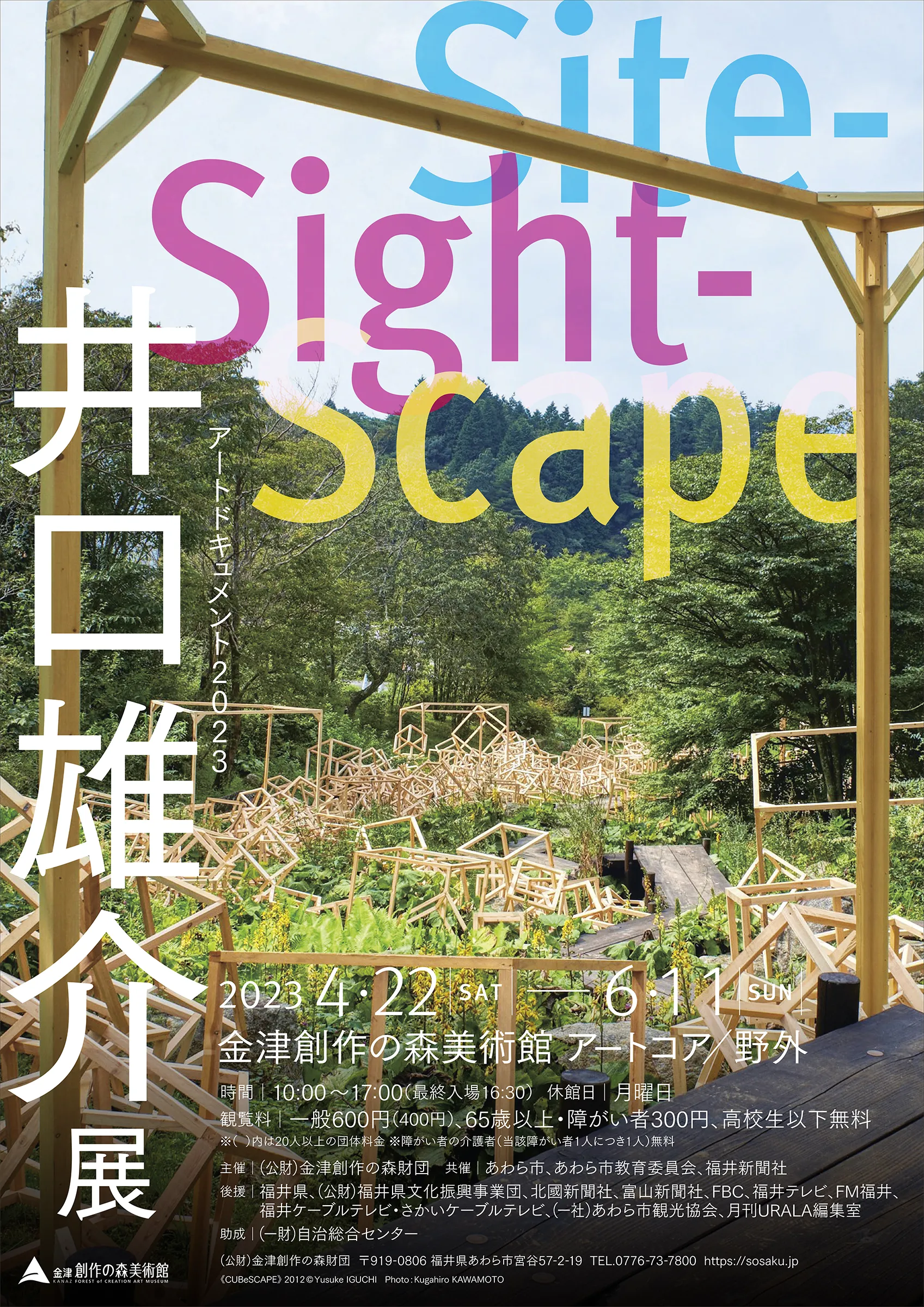 シリーズ企画26回目は「人の経験と風景の関わり」をテーマに、インスタレーション・アートを展開する現代美術作家・井口雄介氏を招待します。大学で建築と刻を学んだ井口は、「鑑賞者の体験によって生まれる<場>の変化」を制作コンセプトに、鑑賞者参加型のインスタレーションによって、その場に「新たな風景」を創り出します。本展では、巨大万華鏡を鑑賞者自身が動かすことで風景を変化させる体験型作品《KALEIDO-SCAPE》や、日常生活にあるものをキューブ型に見立て、森と一体となった作品《CUBeSCAPE》など、金津創作の森で現地制作された作品をご紹介します。視覚関連プログラムのみならず、五感で作品を体感することで生まれる「新たな風景」との出会いをお楽しみください。