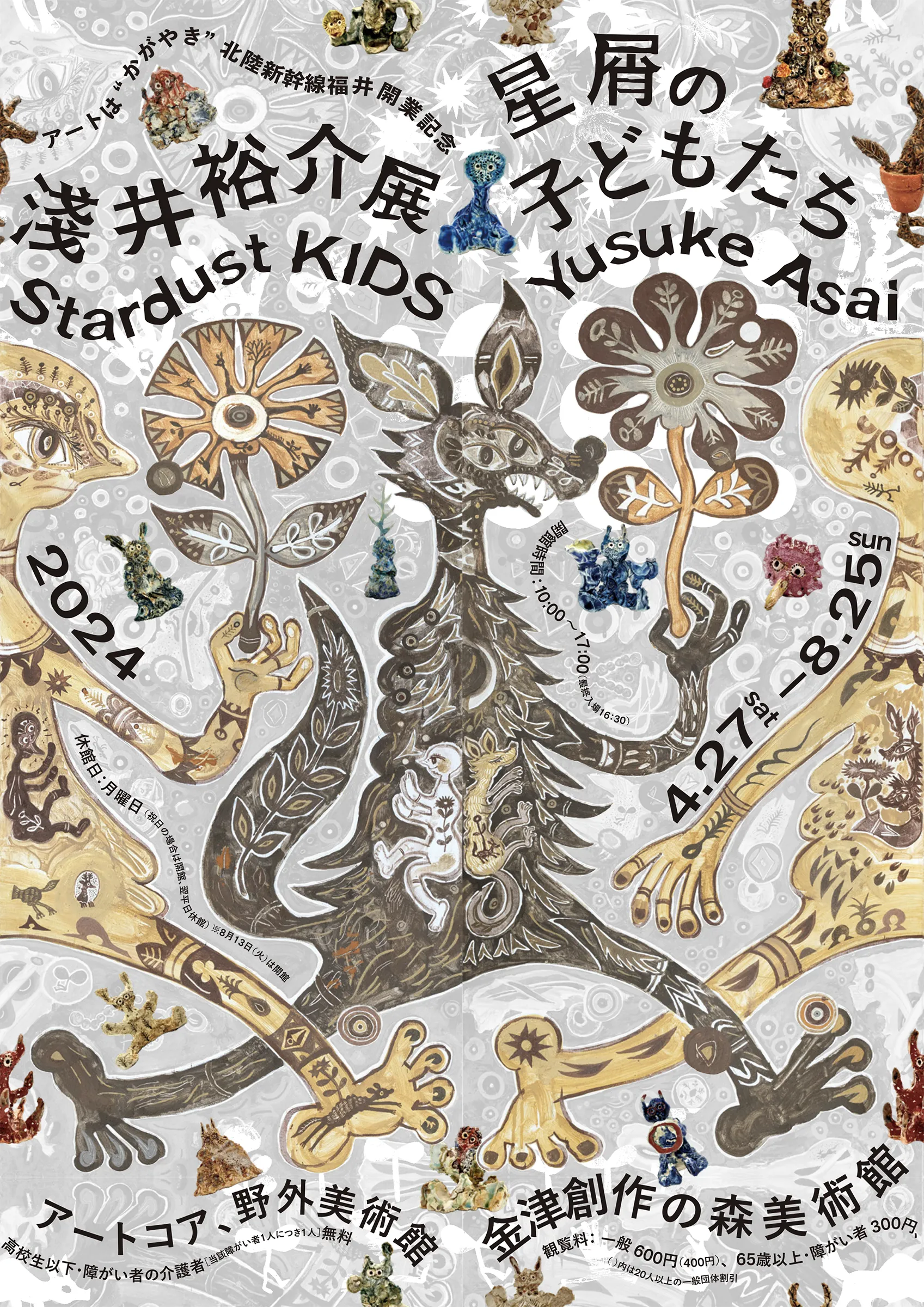 1981年東京都生まれ。美術作家。土、水、埃、小麦粉、テープ、ぺンなど身近な素材を用い、あらゆる場所に奔放に絵を描き続ける。近年の主な個展に「なんか/食わせろ」(ANOMALY、2020年)、「淺井裕介―絵の種 土の旅」(箱根彫刻の森美術館、2015-2016年)、「yamatane」(Rice University Art Gallery、ヒューストン、2014年)、グループ展に「芸術在樵山—広東南海大地の芸術祭」(平沙島、広東省、中国、2022年)、「A Spirit of Gift, A Place of Sharing」(ハンコック・シェーカー・ビレッジ、マサチューセッツ、2022年)、「生命の庭」(東京都庭園美術館、2020-2021年)、「Reborn-Art Festival 2019」(石巻)など。2019年に横浜文化賞 文化・芸術奨励賞を受賞。