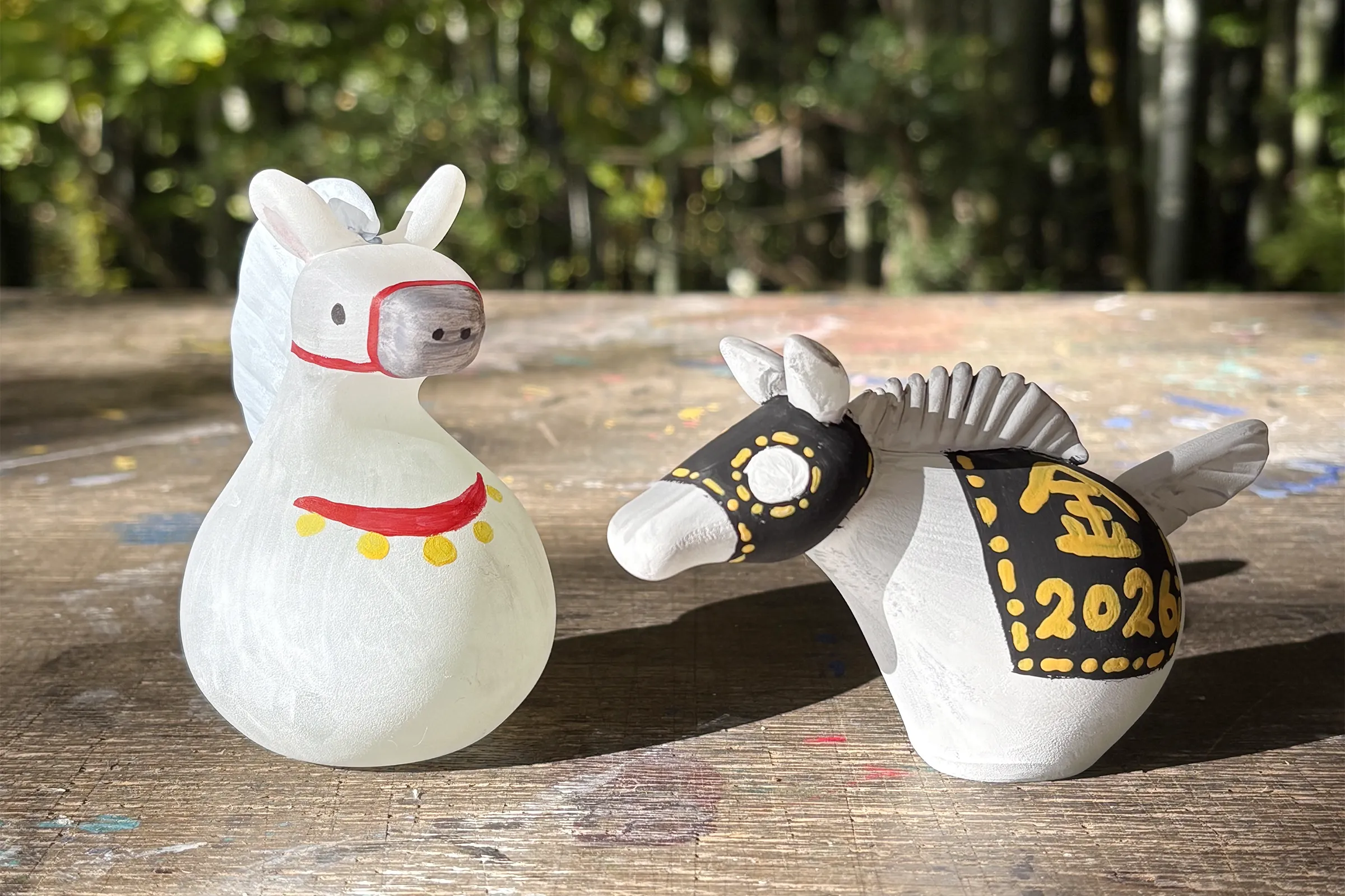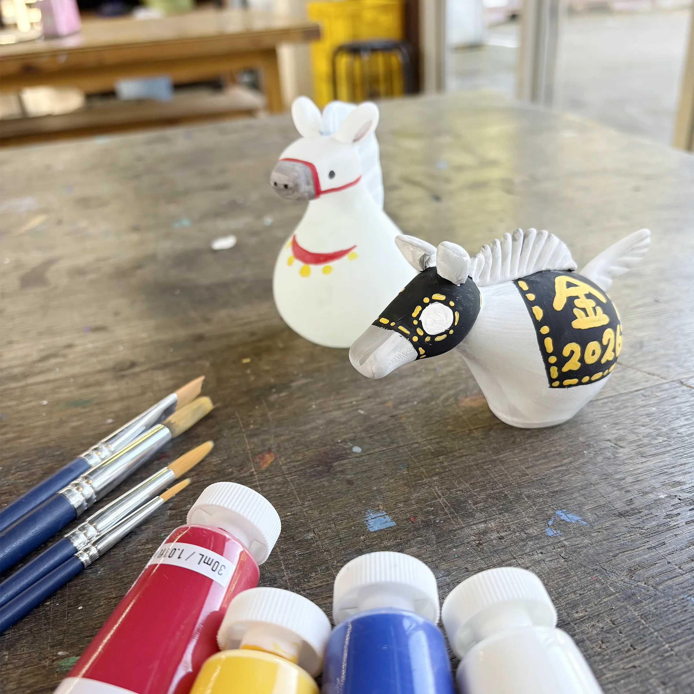 工房手作りのガラスで干支を作る体験です。あらかじめ作られた干支をモチーフにしたガラス生地を選んでから、マーカーや絵具で着色して完成。今年や、来年の目標を書くと願いが叶うかも!