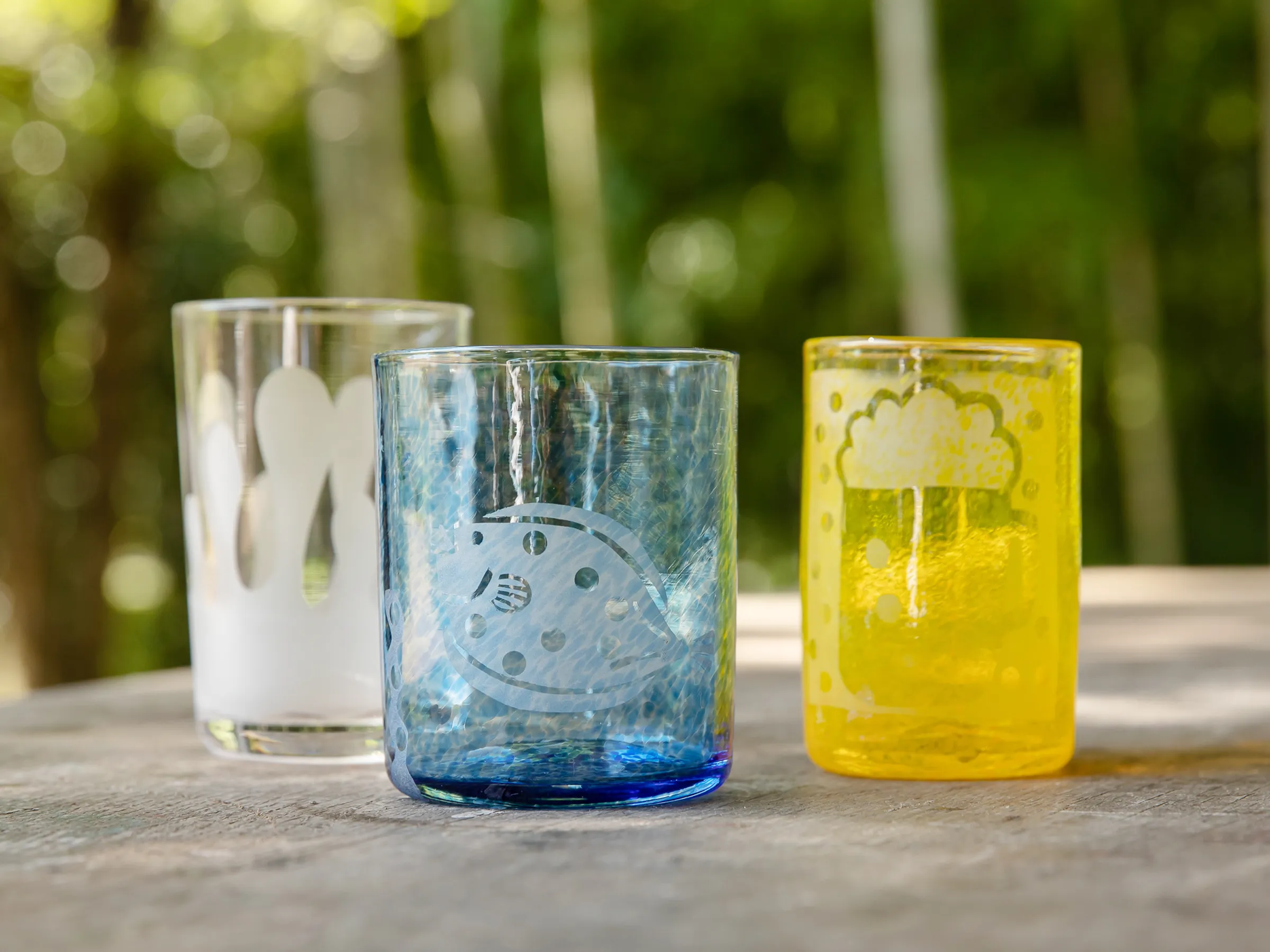 文字やイラストを自由にデザインし、くもりガラス状にする体験です。「無色透明コップ」「手作りの色付きコップ」どちらか選ぶことができます。好きな文字やイラストをデザインできるので、プレゼントにもおすすめです。