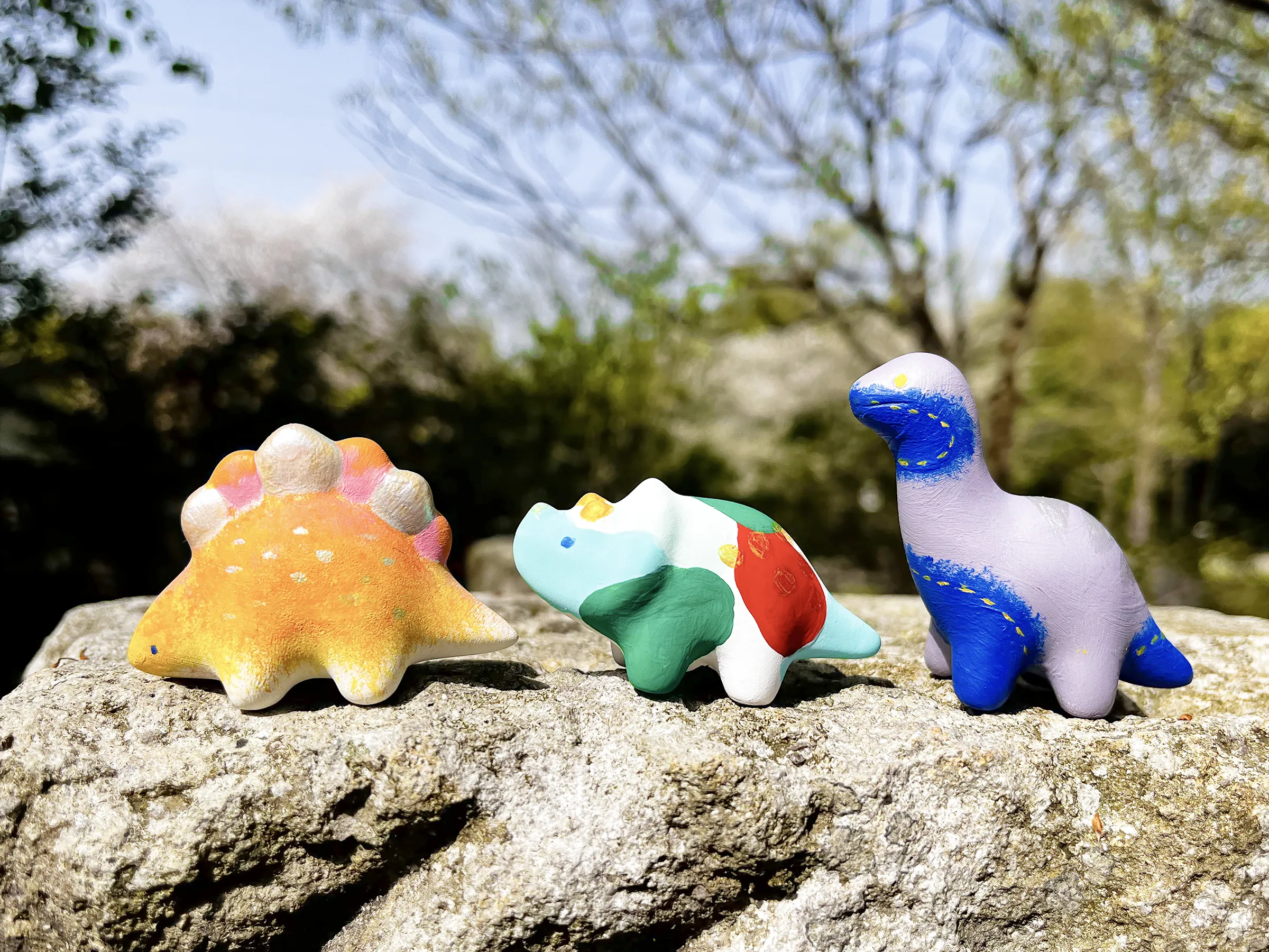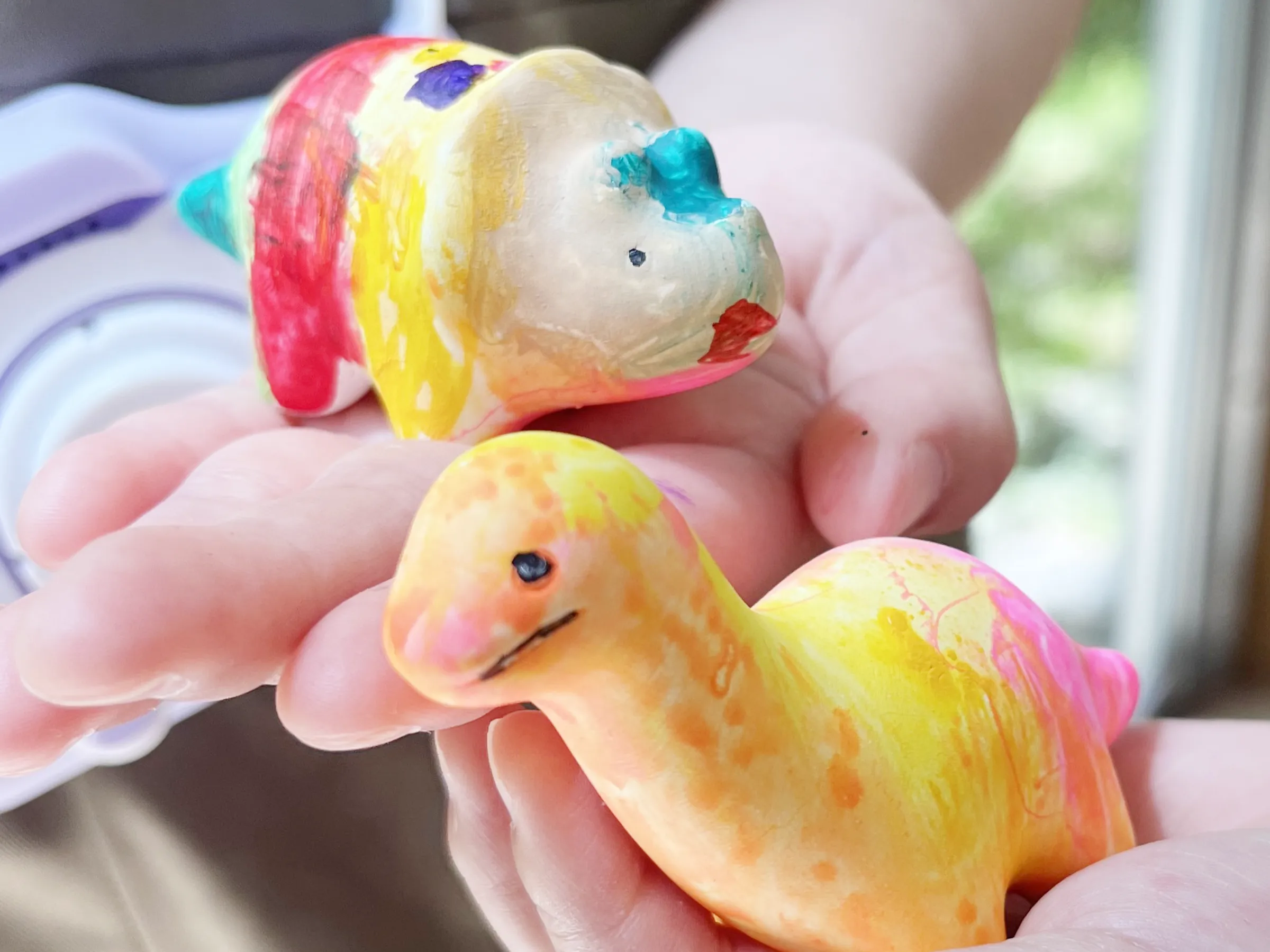 恐竜の形をした置物に、絵具やマーカーなどで絵付けしよう!