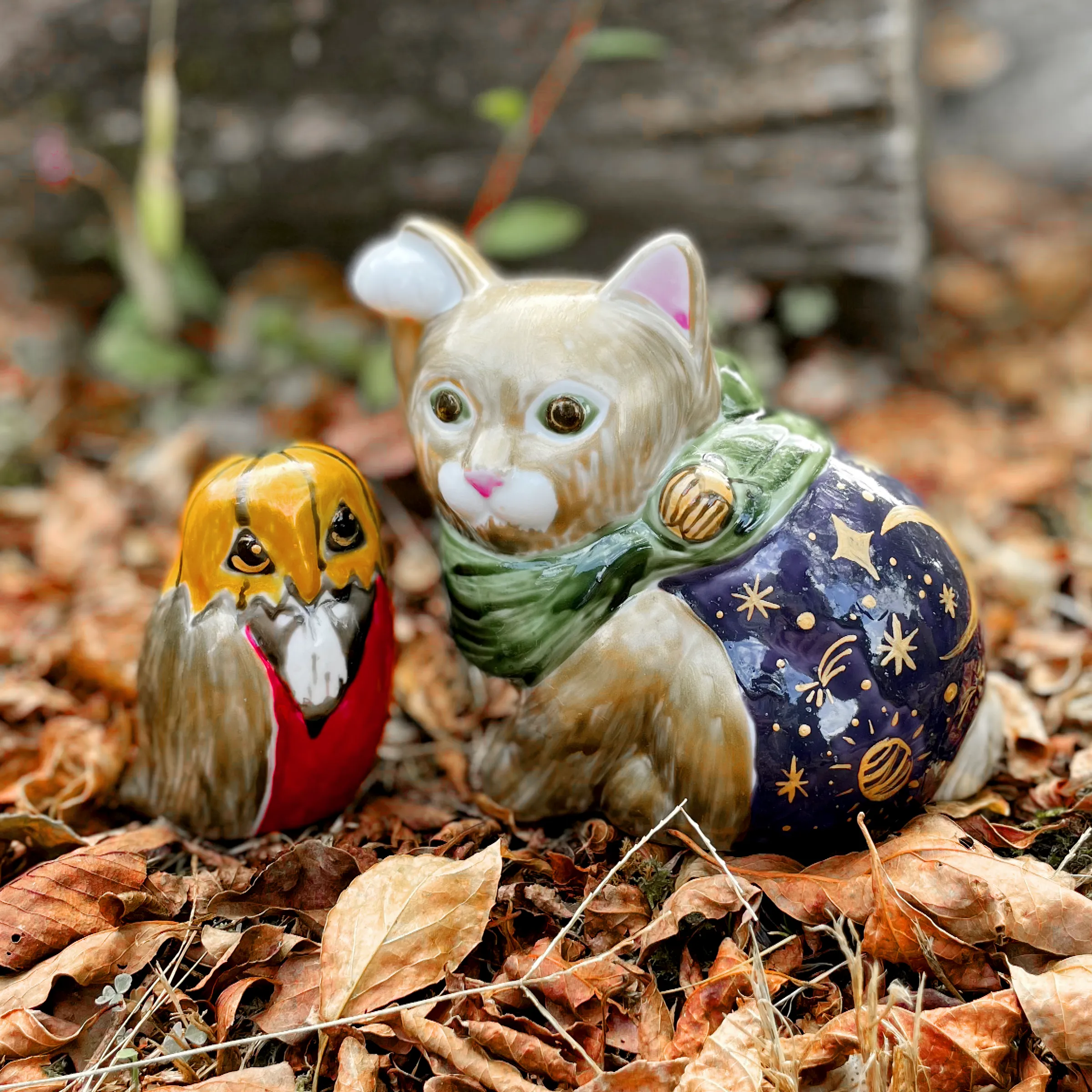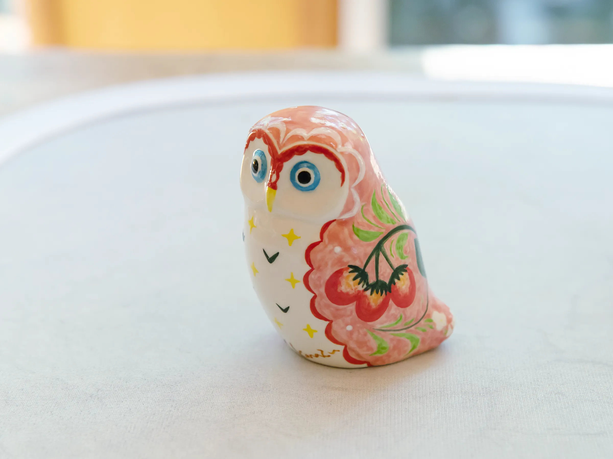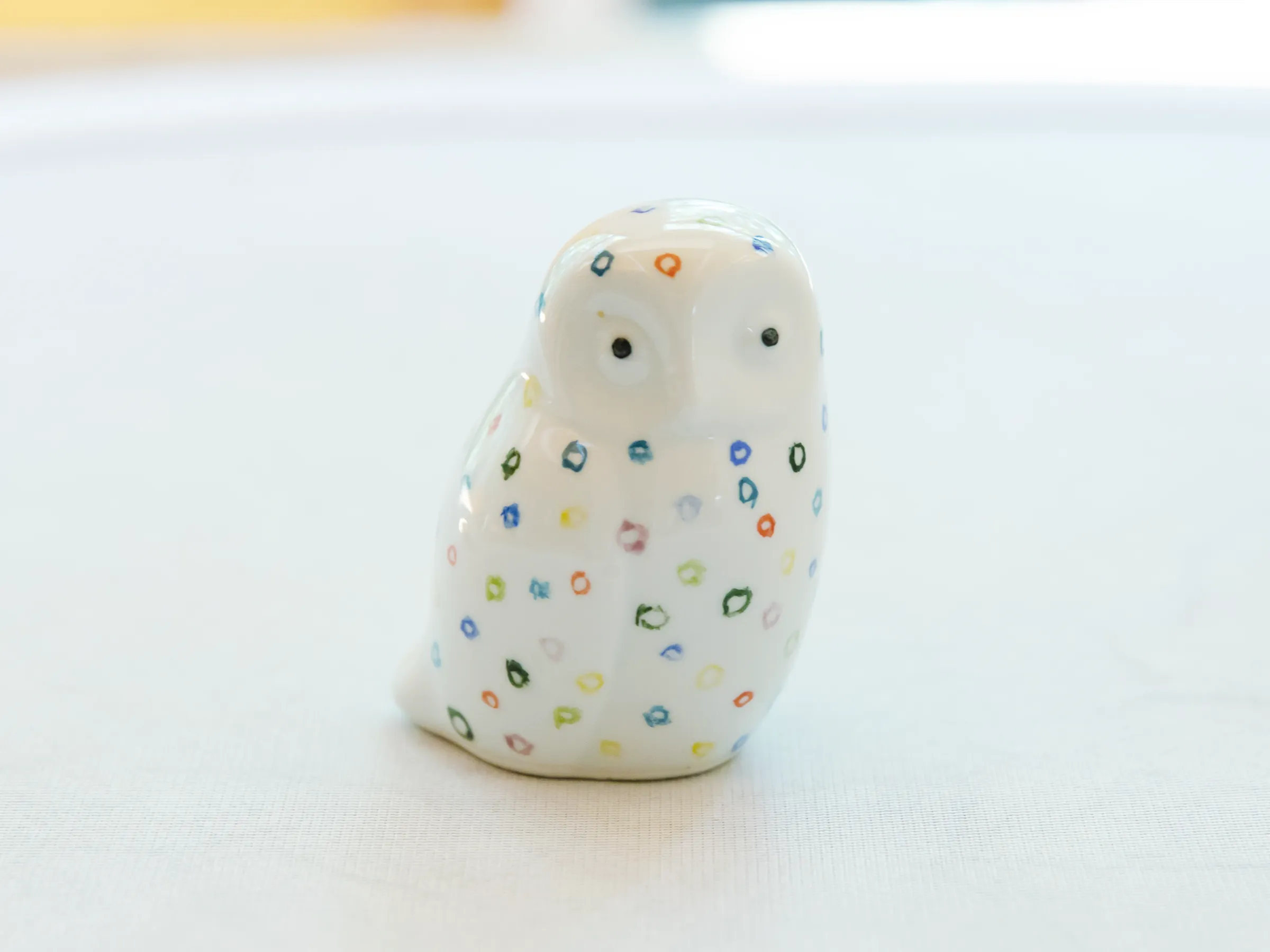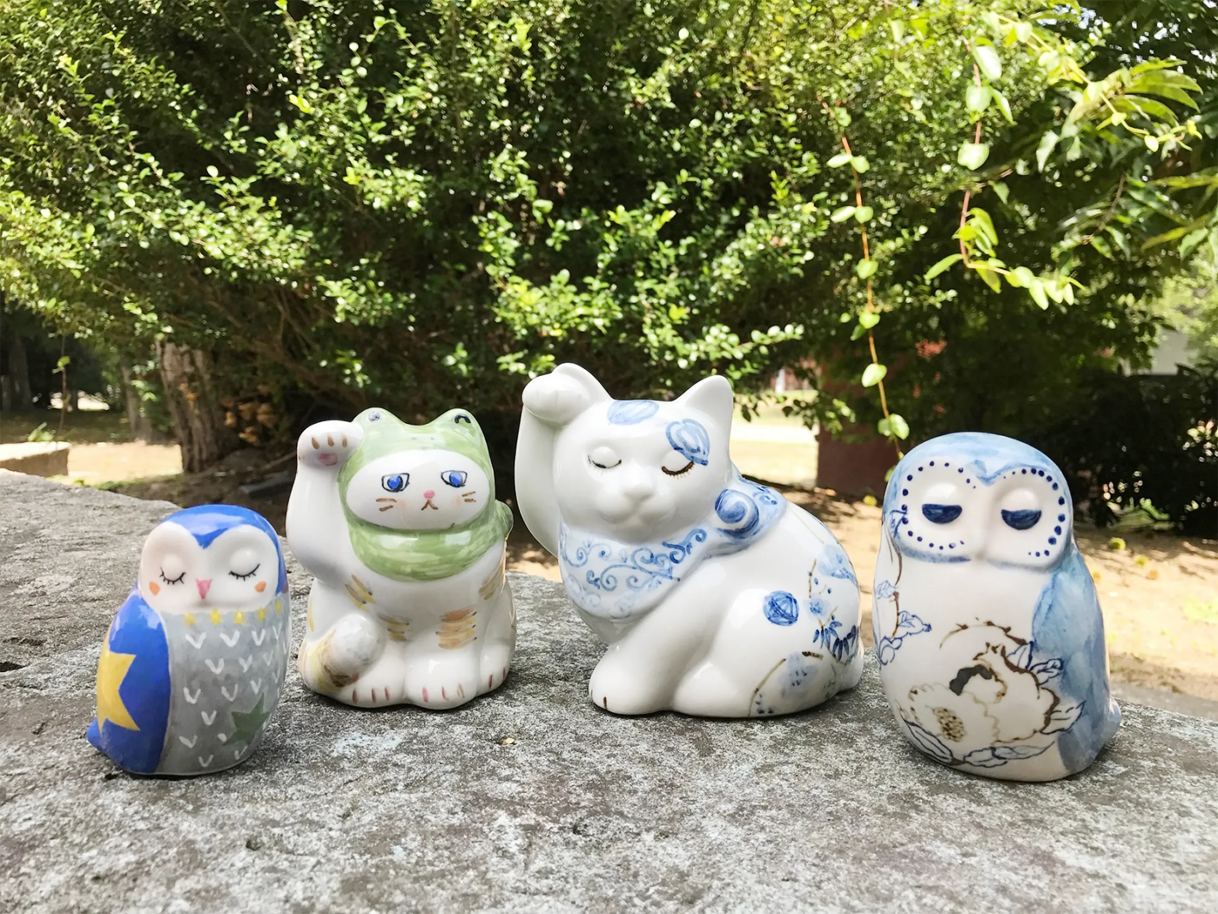 招き猫、ふくろうに自由に絵を描こう。