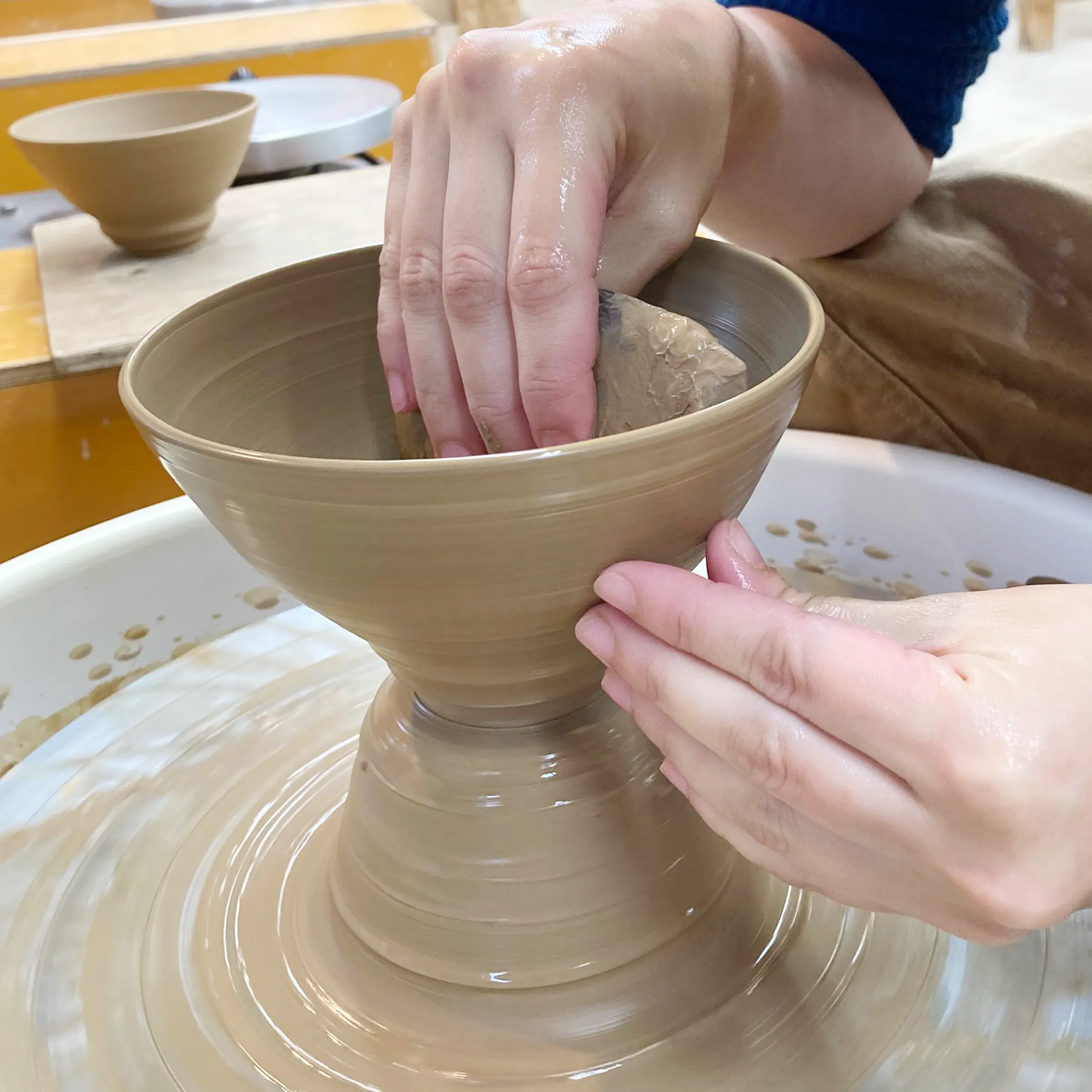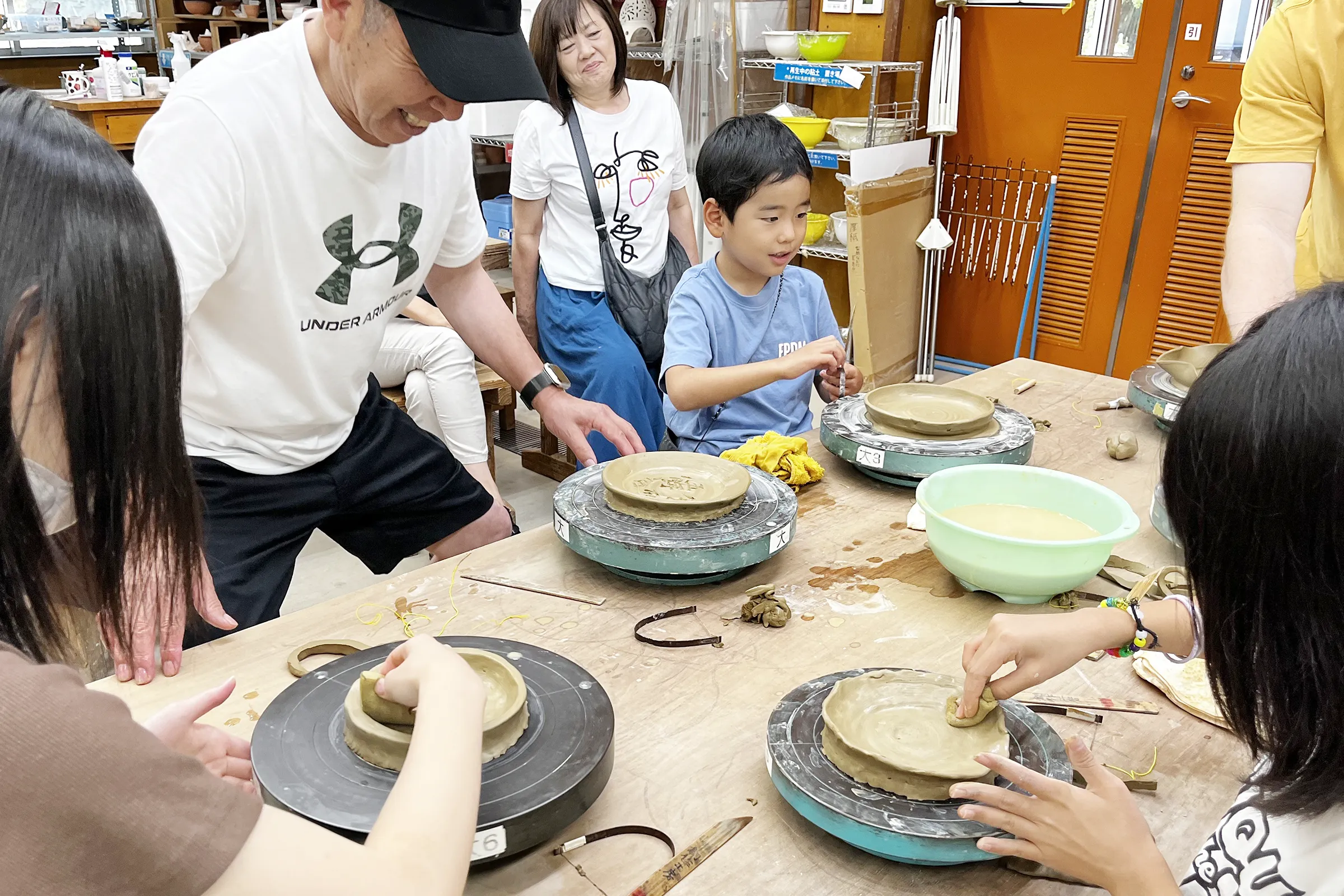 電動ろくろならではの心地よい回転に合わせて、湯吞みや茶碗などの形がスッと整っていく感覚は格別です。手びねりでは表現しにくい左右対称の美しいフォルムを、誰でも楽しみながら作ることができます。講師がマンツーマンで丁寧にサポートいたしますので、初めての方でも安心。英語での対応も可能ですので、海外からの方もお気軽にご参加いただけます。電動ろくろの魅力を、ぜひ体感してみてください!